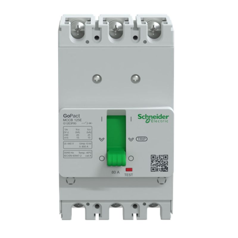 Automação IndustrialDisjuntorDisjuntor 3P Go Pact 80A 25Ka/220V-15Ka/380V Fixo G12E3F80 Schneider