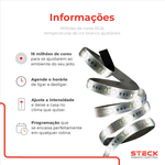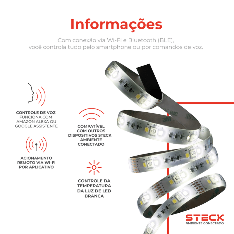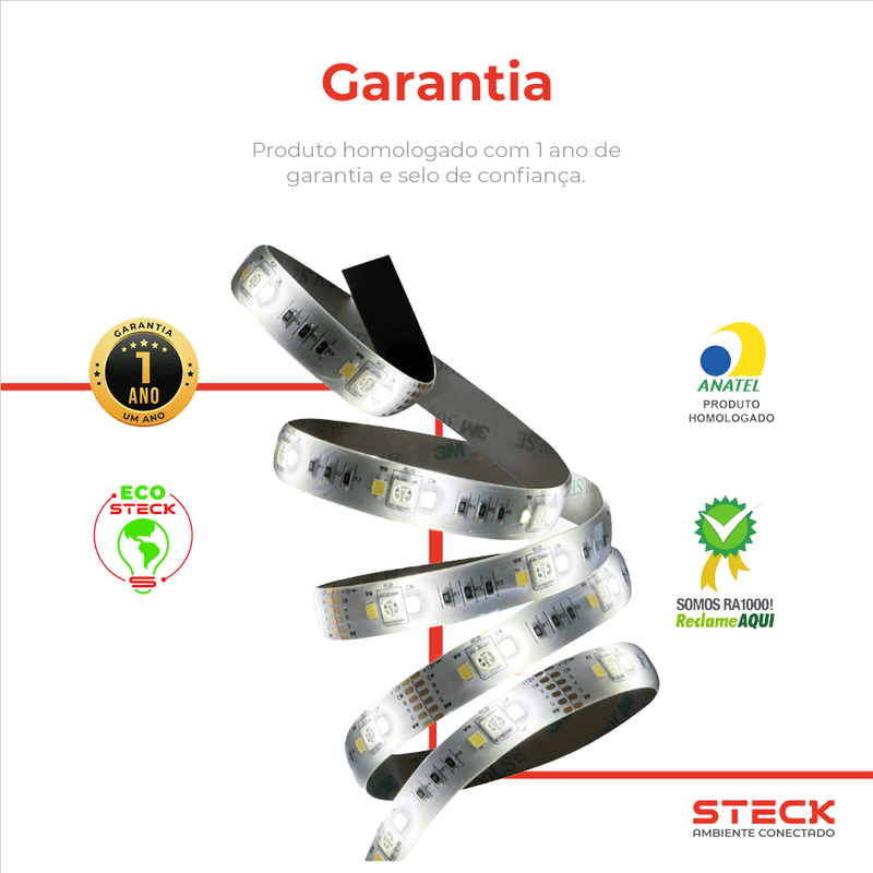 Além disso, a instalação é simples e rápida, e a fita é compatível com assistentes virtuais. E para sua tranquilidade, o produto conta com 12 meses de garantia.
