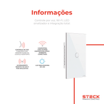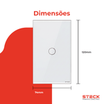 Steck, Interruptor 4X2" 1 Módulo Touch Branco Wi-Fi, Ambiente Conectado, SINT1B1